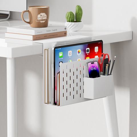 Organisateur latéral de bureau à pince Support magnétique pour stylo et ordinateur portable Aucune perceuse requise-Convient aux bureaux à bord plat